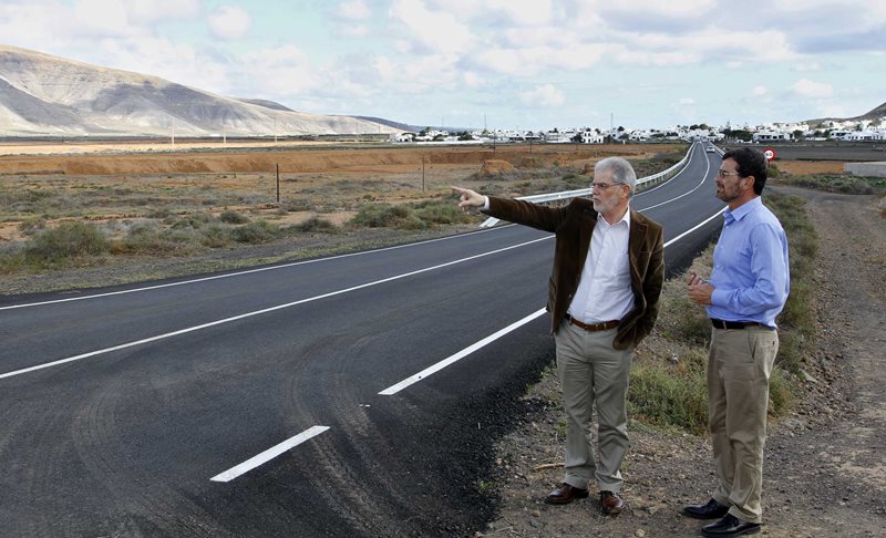 El consejero de Vías y Obras visita los trabajos y muestra su satisfacción por el reasfaltado y la colocación de vallas protectoras y señalética en la carretera de Guatiza
