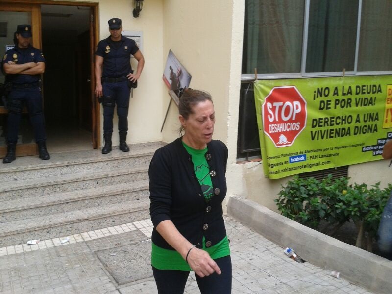 Me han dado sólo media hora para salir", asegura Caty Villalonga, tras ser desahuciada este viernes de la casa en la que vivía junto a su hijo de 17 años en Arrecife. /Vea las imágenes del desahucio