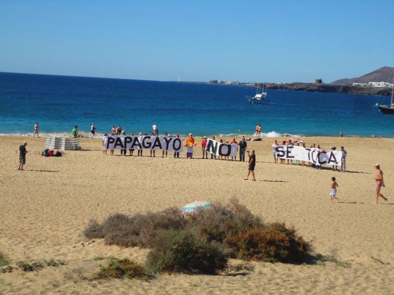 Celebraron el éxito de la población lanzaroteña con pancartas en Playa Mujeres