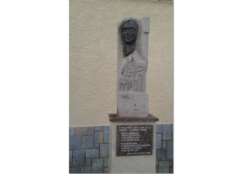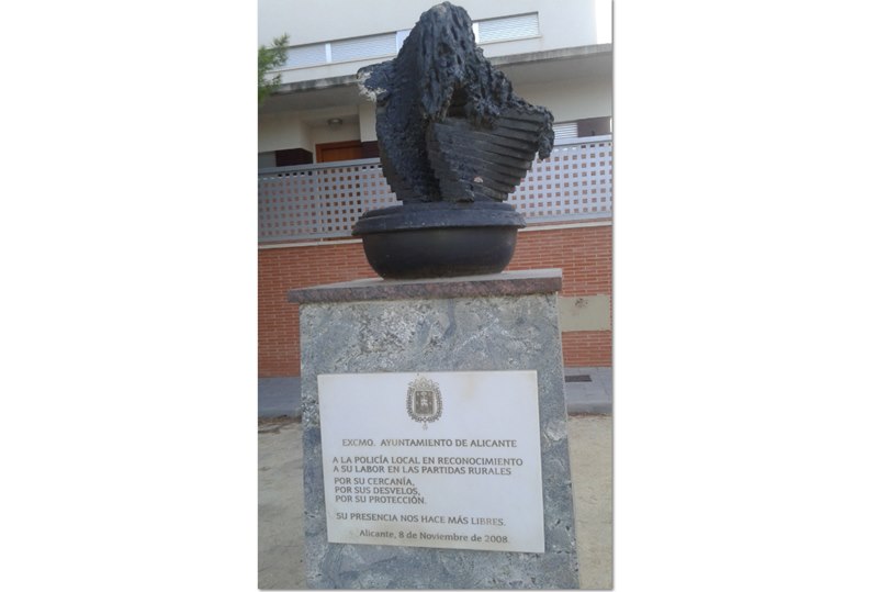 Me invitaron a una de estas casas de campo, distante a unos diez kilómetros de la ciudad donde resido, y pude ver su estilo de vida, apacible y sencilla. El matrimonio anfitrión, que supera el siglo y medio entre ambos, nos obsequia con horchata y empanadillas. Tras la tertulia, salimos a paso lento a recorrer los alrededores y la Calle Mayor. Con orgullo nos señalan la plaza donde juegan los niños y saludan a los vecinos que toman el fresco en la puerta de sus casas. “Allí había un campo de fútbol, donde arbitraba mi marido. Ya no hay nada”. Me llama la atención un monumento a la policía local. Indescriptible. El señor de la casa asiente y dice tímidamente: “Yo tampoco lo entiendo…”. Unos metros más allá observo otro, dedicado a la ex alcaldesa de Alicante, Sonia Castedo. El autor ha intentado resaltar toscamente los rasgos de su modelo sobre un material oscuro. Pero lo más significativo es la dedicatoria del alcalde pedáneo del PP Vicente García, cuya mujer era la “nanny” de Castedo, ”Valiente mujer naciste/correcta tú te portaste/ luchando por Alicante entre todas destacaste/Sonia Castedo, amiga, las partidas rurales te lo agradecen/ esto pasará a la Historia/ a todos nos enorgullece”. García aparece en la famosa foto del pijama con ella, en unas fiestas navideñas de Andorra en 2008. Por aquel entonces la ex alcaldesa de Alicante era concejala de Urbanismo y se decía que la partida rural de Verdegás era la niña de sus ojos. Aunque la oposición había pedido que se retirara la efigie de la política dimitida, allí sigue desafiando a sus adversarios y al buen gusto. El Arte, o la Historia, como mis amigos y cicerones, van a paso cansino en las partidas rurales.