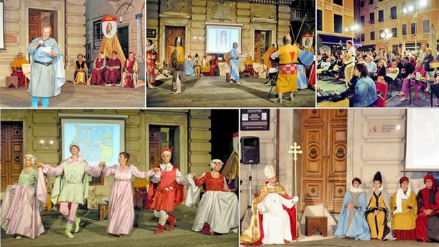 La imagen que se publica pertenece al evento del pasado año, en Varazze, donde se destaca la vestimenta típica del Medievo del siglo XIV. En la otra imagen, Julio Romero entrega una placa conmemorativa del RCNA a Alfonso Licata, en Arrecife, la semana pasada.