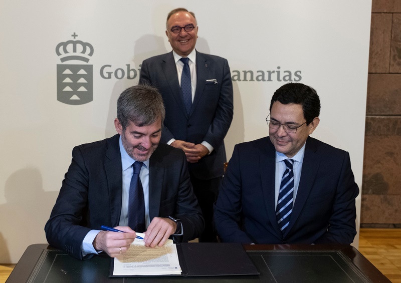 El presidente del Gobierno de Canarias, Fernando Clavijo, suscribió este miércoles, junto al consejero de Sanidad, José Manuel Baltar, y el director general de la Fundación Amancio Ortega Gaona, Óscar Ortega, el convenio de ejecución del protocolo rubricado el pasado 31 de mayo de 2017 relativo a la compra de equipamiento tecnológico para el tratamiento del cáncer por valor de más de 17 millones de euros para el Servicio Canario de la Salud.