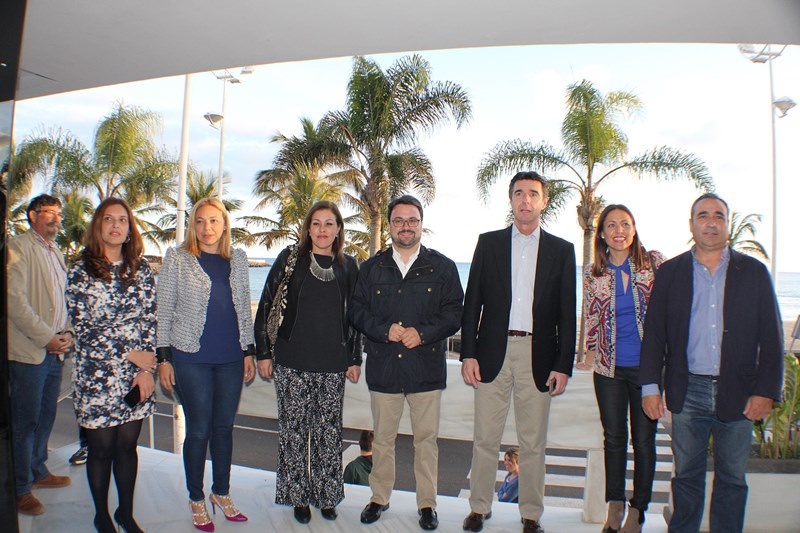 El exministro de Industria fue recibido en la sede del Partido Popular de Las Palmas de Gran Canaria con un aplauso cerrado