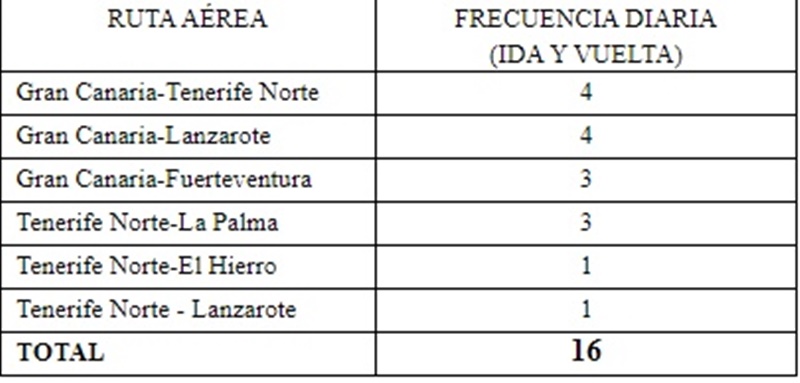 Además, se incorporan cuatro vuelos de ida y vuelta diarios adicionales en la ruta entre Gran Canaria y Lanzarote y dos en las rutas de Gran Canaria-Fuerteventura, Gran Canaria-Tenerife Norte y Tenerife Norte-La Palma.