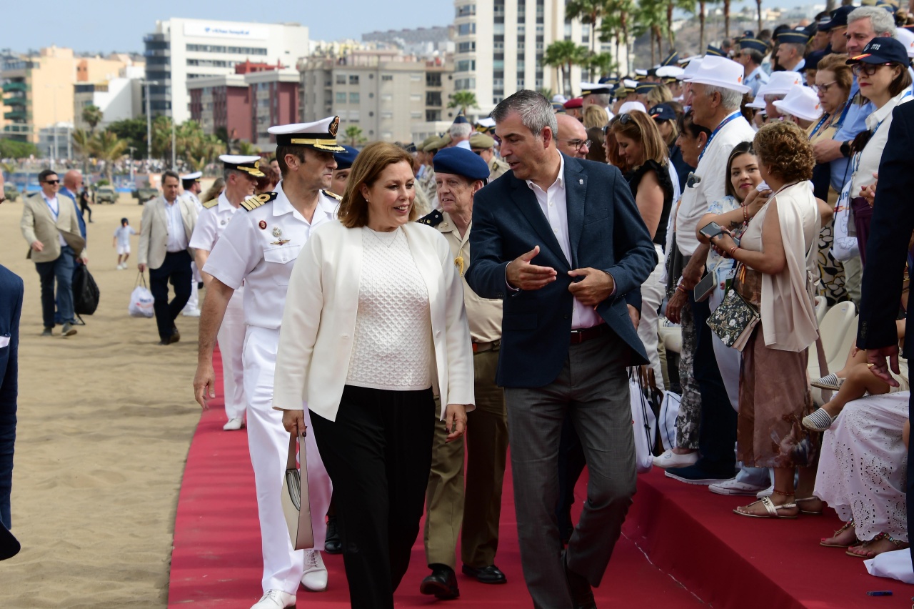 La presidenta del Parlamento de Canarias, Astrid Pérez, asistió este viernes en Gran Canaria al homenaje a las Fuerzas Armadas con presencia de Su Majestad el Rey Felipe VI. Se trata de uno de actos con motivo del Día de las Fuerzas Armadas 2025 que ha desplegado en la playa de Las Alcaravaneras una exhibición de los tres ejércitos, la Guardia Civil y la UME con un desembarco militar. "Es un orgullo que nuestras dos capitales canarias sean el escenario elegido este año para el espectacular despliegue del #DIFAS25. Quiero felicitar a todas las personas que conforman nuestras Fuerzas Armadas y trabajan durante todo el año por la seguridad y defensa de nuestro país", señaló la presidenta.