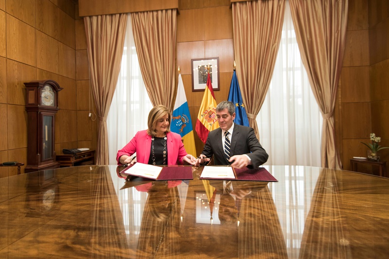 El presidente del Gobierno de Canarias, Fernando Clavijo, y la ministra de Empleo y Seguridad Social, Fátima Báñez, firmaron este jueves un convenio de colaboración relativo a la Inspección de Trabajo y Seguridad Social con el objetivo de reforzar la lucha contra la economía sumergida.