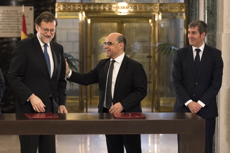 "Canarias puede contar con unos Presupuestos Generales del Estado que son justos con las islas y suponen una enorme oportunidad para el Archipiélago porque trata a los canarios como ciudadanos iguales con el resto del territorio estatal”. Estas fueron las declaraciones que hizo el presidente del Gobierno de Canarias, Fernando Clavijo, al término de la firma por parte del Presidente del Partido Popular, Mariano Rajoy, y el secretario general de CC, José Miguel Barragán, del acuerdo mediante el que ambas formaciones políticas comprometen su apoyo a la Ley de Presupuestos Generales del Estado para 2017 y a la Reforma del Régimen Económico y Fiscal de Canarias en sus aspectos económicos. En el acto estuvo presente también la diputada de Coalición Canaria en el Congreso de los Diputados, Ana Oramas. “Son unos presupuestos justos con Canarias que no pueden entenderse como un privilegio; sino como la recuperación de lo que Canarias había perdido”, añadió.