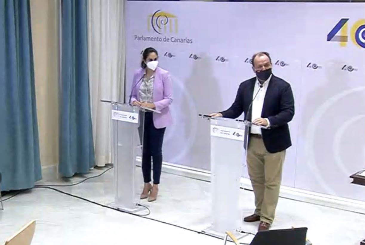 La portavoz de Ciudadanos (Cs) en el Parlamento de Canarias, Vidina Espino, y el diputado de este partido Ricardo Fernández de la Puente han ofrecido este viernes al Gobierno canario la ayuda de la formación naranja, "para sacar adelante unos buenos presupuestos y que, de verdad, nadie se quede atrás: familias, trabajadores, autónomos y pymes". Como muestra de lealtad y responsabilidad tras firmar el Plan Reactiva, han anunciado que "Cs no va a presentar una enmienda a la totalidad a las cuentas elaboradas por el Ejecutivo", que han sido expuestas a lo largo de esta semana por las distintas consejerías.