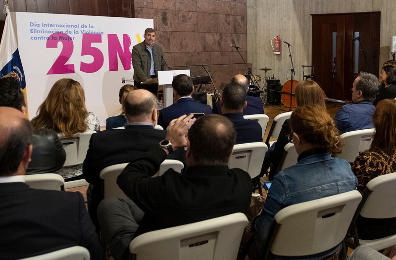"A todas y a todos les digo que cuenten con este presidente y con este Gobierno para trabajar de forma conjunta en todas las medidas que sean necesarias para aumentar las garantías sociales contra la violencia machista. Para conquistar entre todos esa noticia que deseamos por el bien colectivo de nuestra sociedad y de las nuevas generaciones que nos relevarán: que la violencia machista sea historia triste, pero ya pasada", manifestó el presidente durante el acto en el que también estuvieron presentes el consejero de Presidencia, Justicia e Igualdad, José Miguel Barragán, y la directora del Instituto Canario de Igualdad, Claudina Morales, así como, la consejera de Hacienda, Rosa Dávila, la consejera de Empleo, Políticas Sociales y Vivienda, Cristina Valido, y el alcalde de Santa Cruz de Tenerife José Manuel Bermúdez, entre otras autoridades.