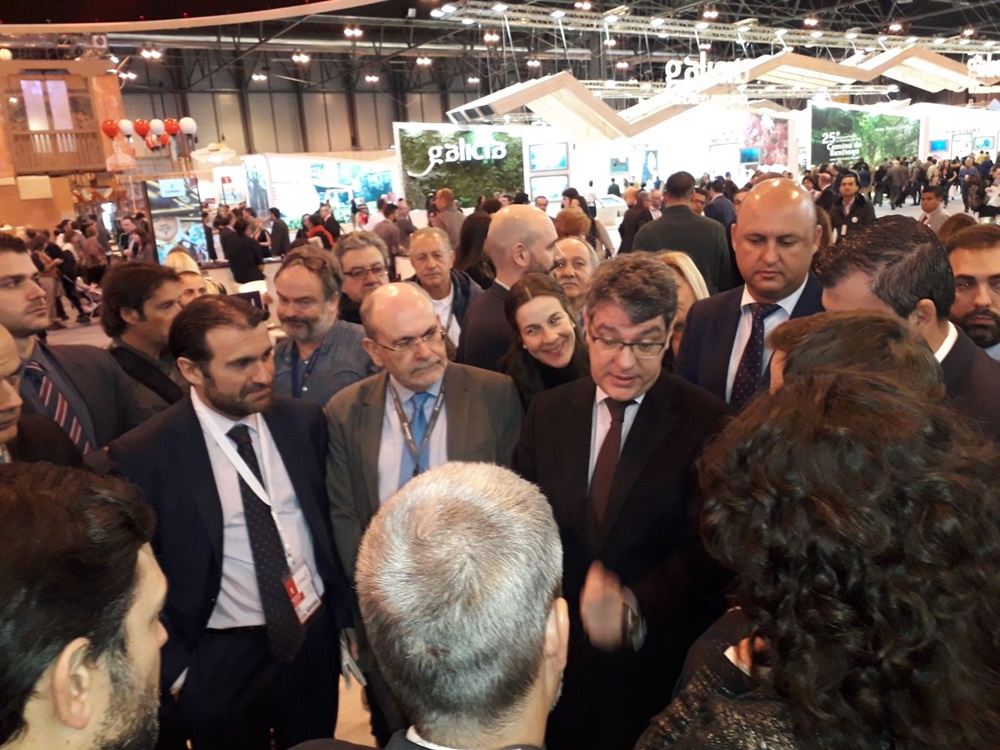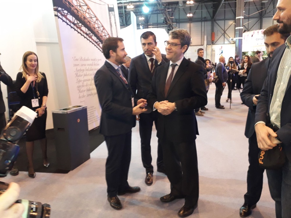 El ministros de Turismo, Álvaro María Nadal, felicitó esta mañana al consejero de Turismo del Gobierno de Canarias, Isaac Castellano, en una visita al stand de las islas en Fitur, por los buenos datos obtenidos en 2017, una de las comunidades con puntos más altos en cuanto a número de visitantes y gasto medio de toda España.