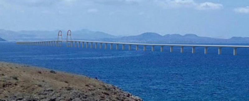 Hasta 1.828.725.352 m³ de hormigón y 157.247.062 kilos de acero son algunas de las principales cifras del proyecto inicial para el puente con Lanzarote que el Cabildo de Fuerteventura ha encargado y recogido en el documento del Plan Insular de Ordenación del Territorio (PIOF). Los números se corresponden con la denominada ‘Alternativa 1’, que ofrece una rasante constante para el diseño del puente y una anchura de unos 23, 4 metros.