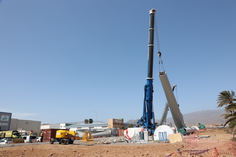 Endesa iza los primeros mástiles de los nuevos aerogeneradores del Parque Eólico de Arinaga