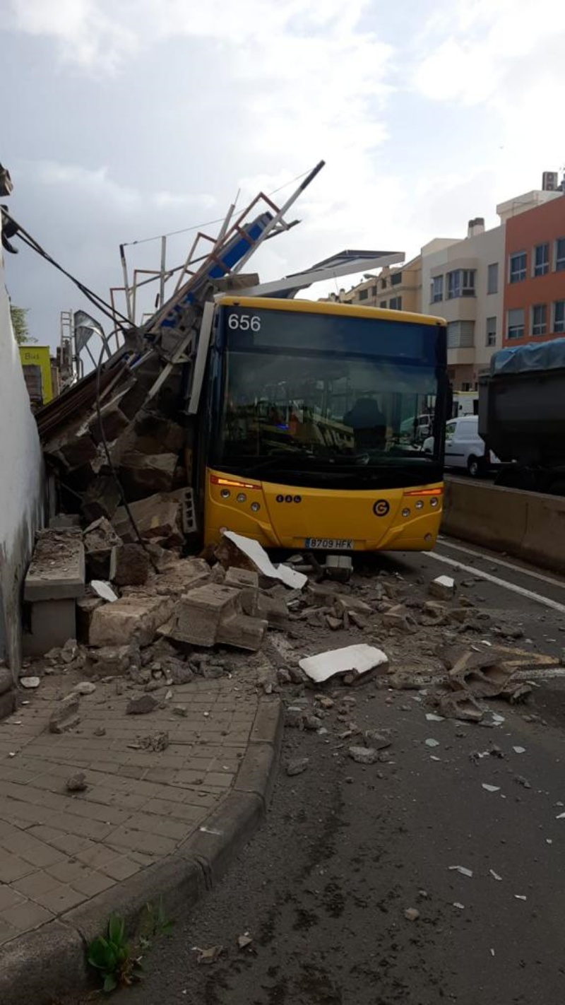 Varios pasajeros viajaban en la citada guagua cuando se les vino encima la pared y la valla, pero no resultaron heridos de gravedad, tan sólo se produjeron daños materiales. De hecho, fueron los propios viandantes, cercanos al accidente, los que colaboraron para ayudarles a salir del vehículo, rompiendo para ellos los cristales del mismo.