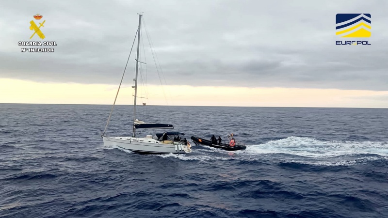 Tres días más tarde, concretamente el 5 de agosto, se abordó el velero a una distancia aproximada de 500 MN al noroeste de la isla de Gran Canaria, encontrándose en el interior numerosos bultos que arrojaron un peso final de 700 kg de cocaína.
