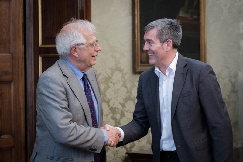 Fernando Clavijo destacó al término de la reunión con Borrell que "ya en ese viaje comprobamos la sensibilidad del ministro hacia la ultraperiferia, además del amplio conocimiento del funcionamiento del entramado institucional de la UE y concretamente de los asuntos que afectan a Canarias" y señaló que "precisamente la defensa de la ultraperiferia en la negociación del marco financiero plurianual para el periodo post 2020 y las propuestas legislativas y reglamentaria para el próximo periodo fueron dos aspectos que también tuvimos ocasión de analizar hoy".