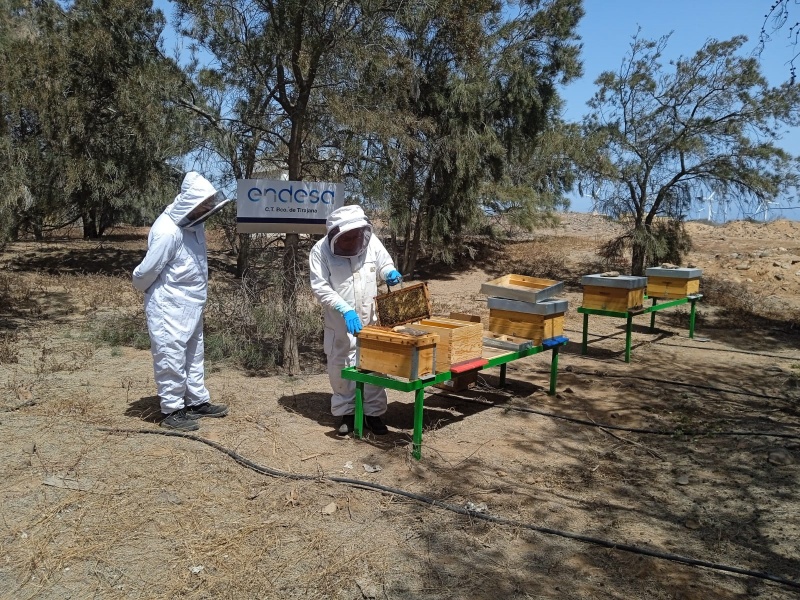 El pequeño apiario de la central de Barranco de Tirajana no hubiera cobrado forma sin la mano de Fernando Marrero, apicultor y técnico de la central térmica, quien ha instalado las colmenas, mimado a cada uno de los ejemplares de abeja canaria y observado su evolución en este tiempo. Hay que destacar también en el desarrollo de esta iniciativa la predisposición del director de la central de San Bartolomé de Tirajana, Luis Varela, quien no dudó un momento en buscar los medios para que Fernando Marrero pudiera integrar un proyecto con el sello de sostenibilidad y respeto por la naturaleza en el recinto de la central térmica. Ambos están convencidos de que es posible la hibridación entre la tecnología de la nueva Generación gestionable y las energías renovables con actuaciones propias del sector primario.