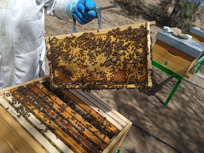 Contra todo pronóstico las abejas del apiario de Tirajana han superado con éxito el primer invierno en su nueva residencia y ahora afrontan la primavera como una etapa prometedora, de máxima producción y con vientos más suaves De hecho, Fernando ya ha podido divisar la miel en algunas colmenas calculando unos dos kilos de miel, una producción que irá en aumento con el avance de la primavera y el buen tiempo. Además, si el proyecto sigue siendo exitoso no descarta incrementar en los próximos meses el número de colmenas del apiario de la central de Tirajana, ubicado en la zona verde y de placas solares.