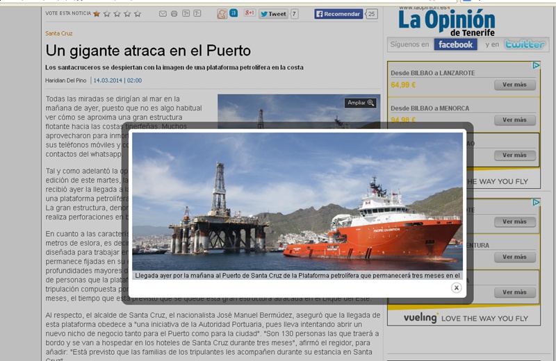 Tal y como informa este periódico, José Manuel Bermúdez, el alcalde de Santa Cruz, adelantó que la Autoridad Portuaria tinerfeña está trabajando para hacer más habitual la llegada de estas grandes estructuras a la isla. "Me consta que ya hay varios contratos en marcha que traerán más plataformas petrolíferas al Puerto de Santa Cruz a lo largo de este año", aseguró al citado diario.