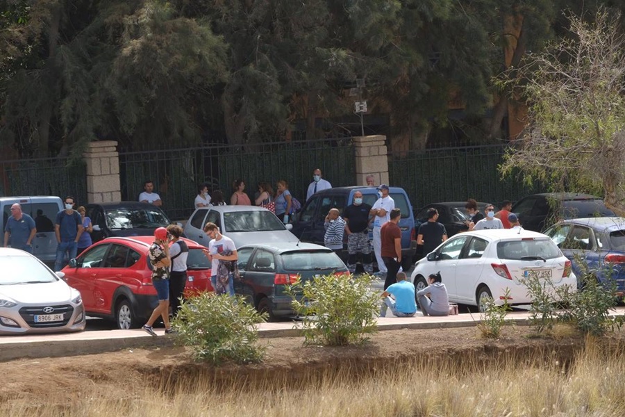 Control sanitario en el acceso al hotel de Adeje donde están retenidos 723 turistas