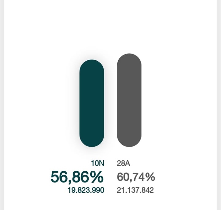 Son datos oficiales facilitados por el Ministerio del Interior en su página web, con una participación correspondiente al 100 % de mesas y un 100% de los electores.