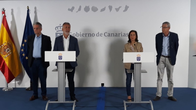 El presidente del Ejecutivo canario reconoció que hay que seguir intensificando los esfuerzos en el Norte. Ahora, "la terminología respecto al incendio solo permite hablar de estabilizado cuando se produce una situación bastante favorable, aunque ya se encamina hacia la definición de controlado primero y finalmente extinguido".