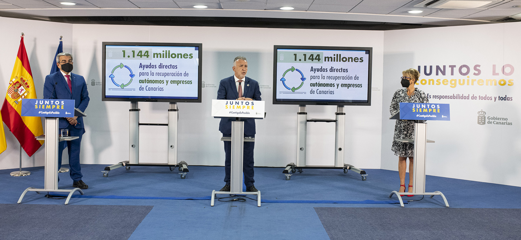 El Consejo de Gobierno acordó este viernes la aprobación del decreto-ley por el que se regula en el ámbito de la Comunidad Autónoma de Canarias la concesión de la Línea COVID de Ayudas Directas a Personas Autónomas y Empresas, financiada por el Gobierno de España y que inyectará en el Archipiélago 1.144 millones de euros para ayudas directas al tejido productivo, destinadas a realizar pagos pendientes a proveedores y otros acreedores; satisfacer deudas financieras y no financieras y cubrir las pérdidas acumuladas entre el 1 de marzo de 2020 y el 31 de mayo de 2021. El plazo de solicitud de las ayudas se abrirá el próximo 15 de junio y permanecerá activo hasta el 28 de julio, ambos incluidos, y a ellas podrán acceder empresas y profesionales de todos los sectores económicos, salvo el financiero y el de seguros.