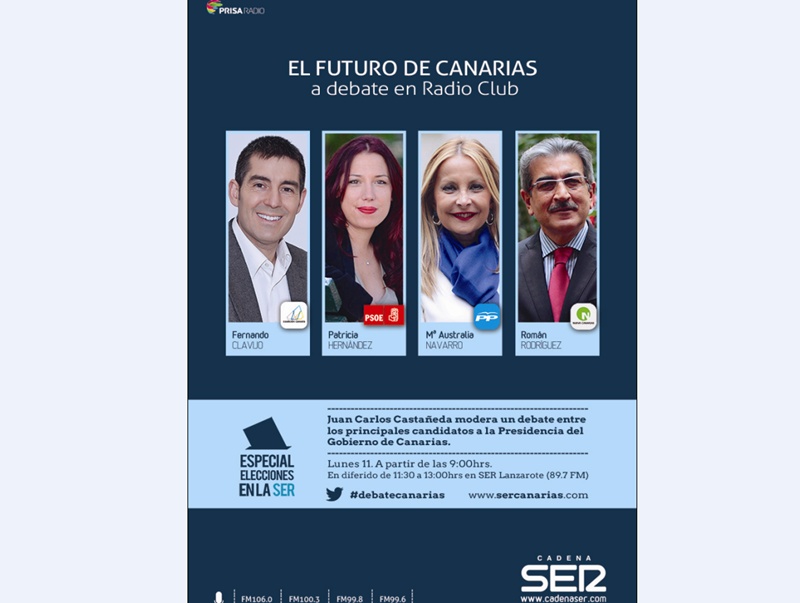 El debate será moderado por el conductor de “La Portada” y “Hoy Por Hoy Tenerife”, Juan Carlos Castañeda. La totalidad del debate podrá seguirse en tiempo real en Twitter bajo el hashtag: #debatecanarias y además en la página web sercanarias.com. En SER Lanzarote también podrá escucharse el debate en diferido de 11:30 a 13:00 horas a través del 89.7 FM.