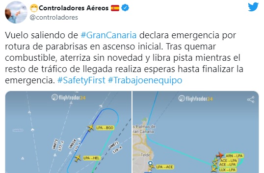 Tras quemar combustible, y según lo comunicado por el perfil de Controladores Aéreos, ha aterrizado sin novedad y libra pista mientras el resto de tráfico de llegada realiza esperas hasta finalizar la emergencia.
