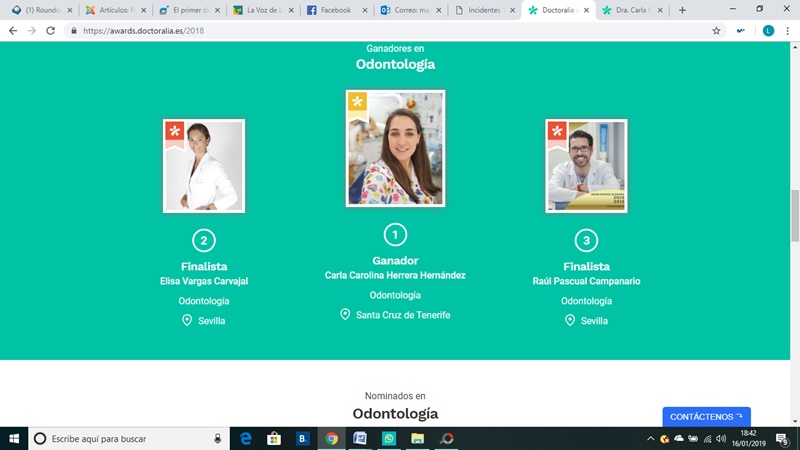 Una dentista canaria, la doctora Carla Carolina Herrera, profesional que ejerce en Santa Cruz de Tenerife, ha obtenido el primer premio en los premios Doctoralia Awards, en la especialidad de odontología.