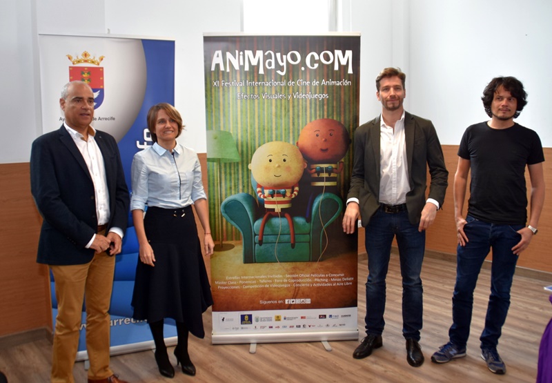 El Centro Cívico de Arrecife acogió esta martes la presentación de la VI edición del itinerante Animayo Lanzarote, un encuentro con los medios de comunicación de la isla, que contó con la presencia de la alcaldesa de Arrecife, Eva de Anta, el concejal de Cultura capitalino, Rafael Juan González, el consejero de Cultura del Cabildo de Lanzarote, Óscar Pérez, y el director y productor de Animayo, Damián Perea Lezcano. Una cita plenamente consolidada, que este año va a contar con unos 4.000 participantes y con ponentes internacionales de gran prestigio dentro del mundo de los efectos visuales, el arte digital y la animación.