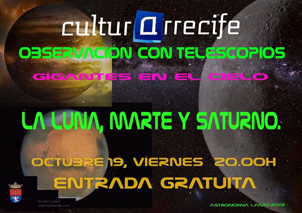 Todavía con el cielo en la retina, los amantes de las estrellas podrán participar en un visionado del firmamento con potentes telescopios desde la explanada del Castillo de San Gabriel, de acceso libre. Será el viernes a partir de las 20.30 horas. Marte, Júpiter y Saturno son todavía, junto a la Luna, las grandes referencias de nuestro firmamento en este mes de octubre.