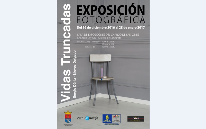 'Vidas truncadas'. Sergio Déniz y Nieves Delgado exponen del 16 al 28 de enero en la Sala Municipal de Exposiciones Charco San Ginés. Su última muestra que nace de la necesidad de hacer visible el rostro de una parte de esta sociedad que vive al borde al abismo, de humanizar las cifras que la mayoría de los medios nos presentan de un amanera fría y aséptica, rostros que esconden historias desgarradoras, pero al mismo tiempo llenas de dignidad, valentía y esperanza.