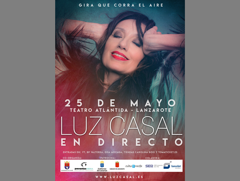 Luz Casal. La Sala Teatro del Cine Atlántida de Arrecife acoge el sábado 25 de mayo, a las 21:30 horas, el concierto de la popular cantante. Entradas: 25 euros.