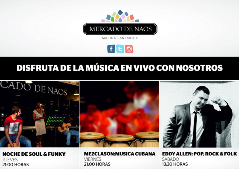 MERCADO DE NAOS Marina Lanzarote. Música en vivo jueves y viernes a las 21 h. y sábados a las 13:30 h.