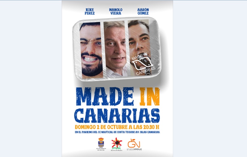 Made in Canarias. Costa Teguise acoge el 2 de octubre, a las 20:30 horas, en el parking del CC Nauticaleste espectáculo de humor con Manolo Vieira, Kike Pérez y Aaron Gómez.
