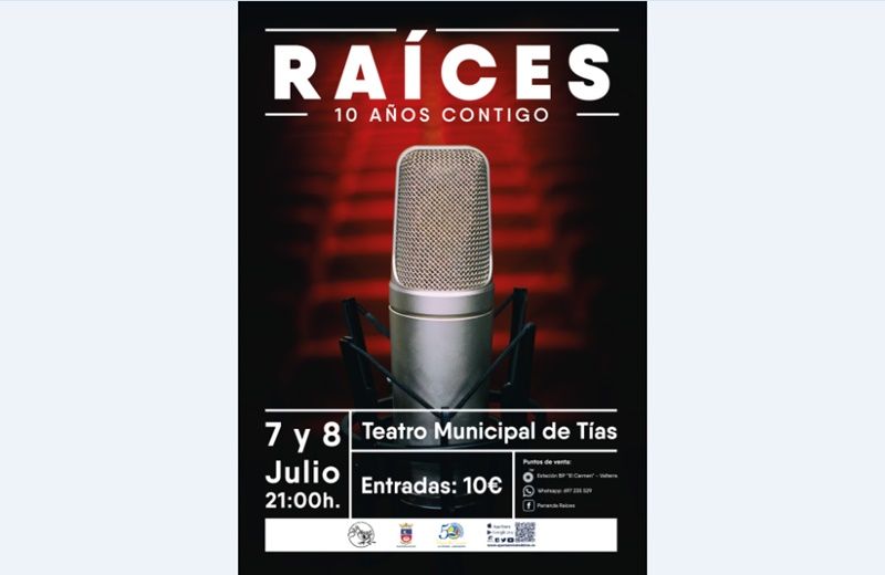 'Raíces. Diez años contigo'. El Teatro Municipal de Tías acoge los días 7 y 8 de julio, a las 21:00 horas, dos conciertos que homenajean los días años sobre los escenarios del grupo. Entradas: 10 euros.