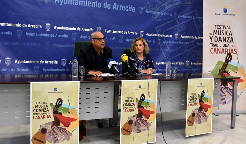 Aurora Moreno, directora general de Promoción Cultural del Gobierno de Canarias y el concejal de Cultura del Ayuntamiento de Arrecife, Rafael Juan González Robayna, presentaron este martes el Festival de Música y Danza Tradicional de Canarias, un proyecto con el que se pretende poner en valor el folclore tradicional a través de las melodías, indumentarias y expresiones que representan nuestro más preciado legado histórico, cultural y sentimental. Un legado que, según Moreno "debe ser evocado, compartido y comprendido para la mejor construcción de nuestra identidad y memoria como pueblo".
