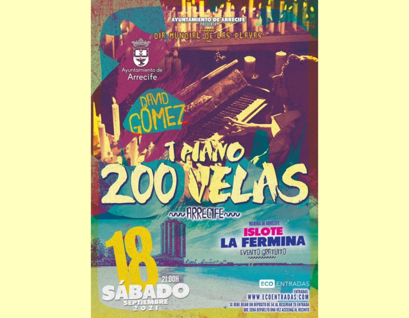 El privilegiado entorno del islote de Fermina, recibe este 18 de septiembre al pianista David Gómez, con su concierto “Un piano y 200 velas”, programado desde la Concejalía de Playas del Ayuntamiento de Arrecife para conmemorar, según apunta su concejal, Ángela Hernández, el Día Mundial de las Playas, una jornada que realza la importancia de España como el país con mayor número de banderas azules del Mundo.