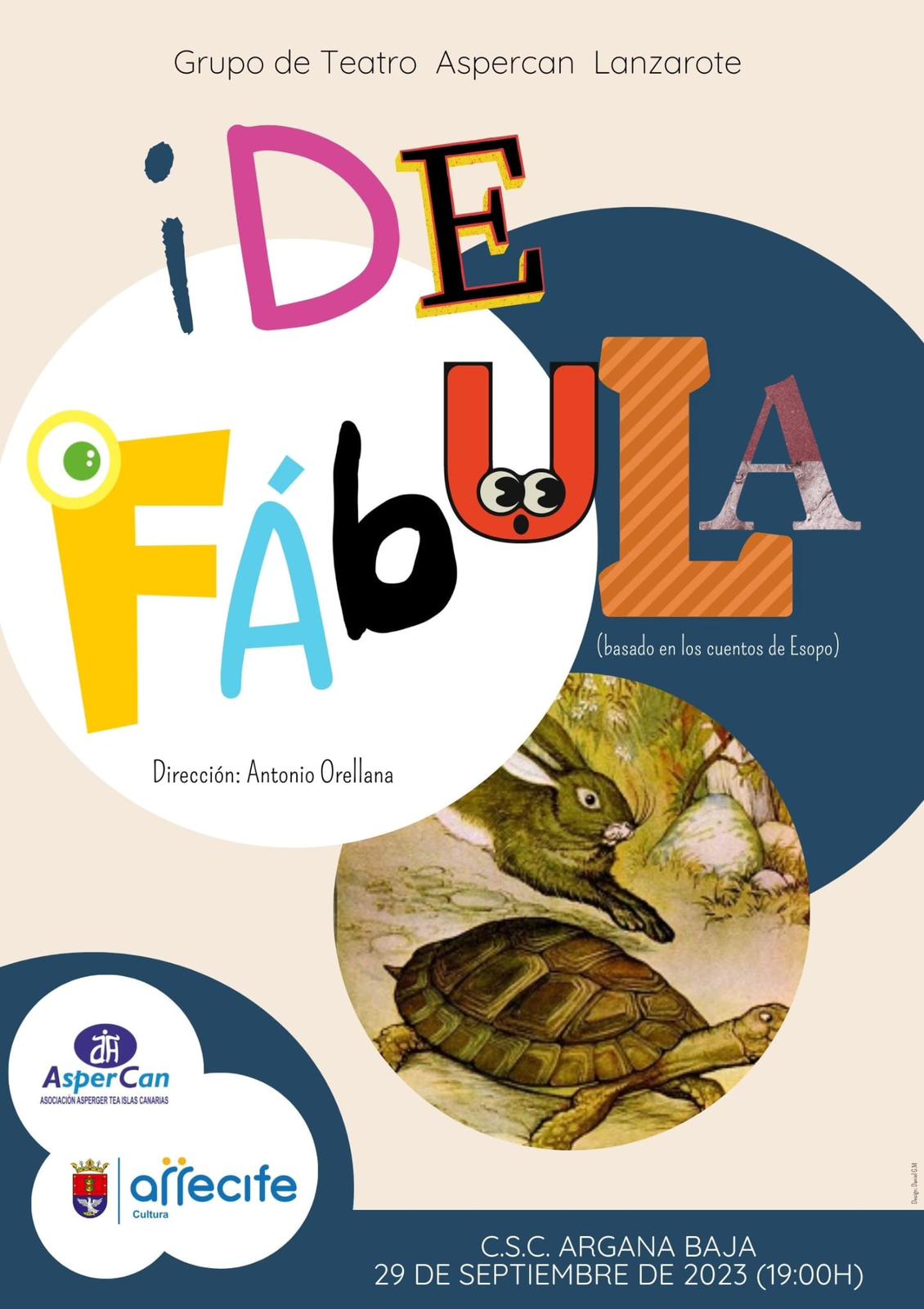 El Centro Sociocultural de Argana Baja albergará mañana viernes 29 de octubre a las 19:00 horas, la escenificación de "De Fábula"; una representación con la que el alumnado de la Escuela de Teatro de AsperCan Lanzarote finalizó el curso 2022/23 y de la que ahora podrá disfrutar la ciudadanía, gracias a la colaboración del Ayuntamiento de Arrecife, que preside el alcalde Yonathan de León Machín, a través de su concejal de Cultura, Abigail González.