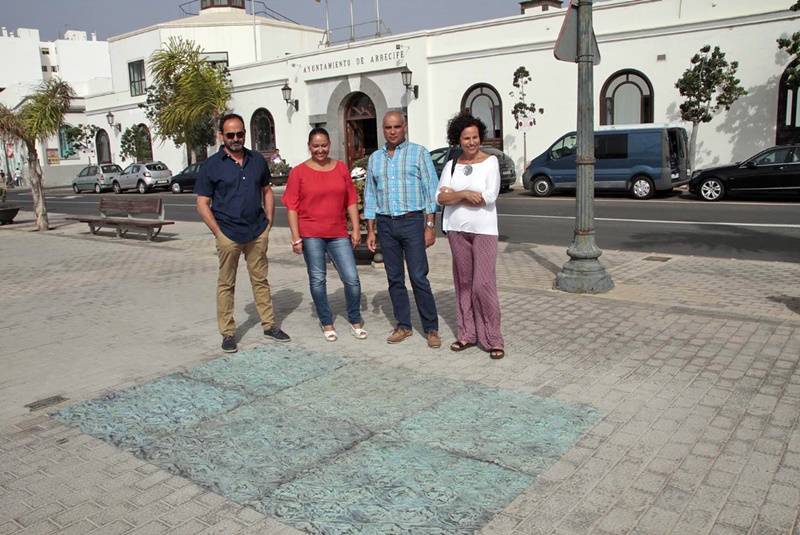 Una alfombra de jareas de bronce, ubicada en la Avenida de Arrecife, frente a la Pescadería Municipal, rinde homenaje al sabor marinero de la capital, sus pescadores, su puerto y sus jareas secas.