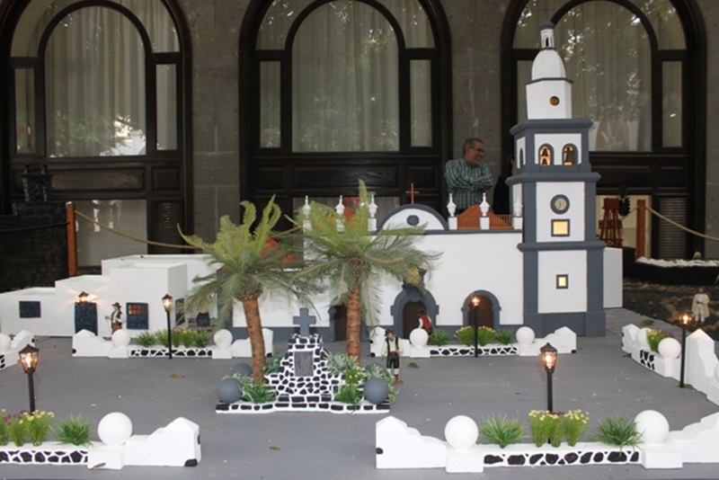 El Ayuntamiento de Arrecife ha presentado en la mañana de este lunes su Belén municipal, una creación del artista Luis Acuña que podrá visitarse hasta el término de las Navidades en el patio de La Recova.