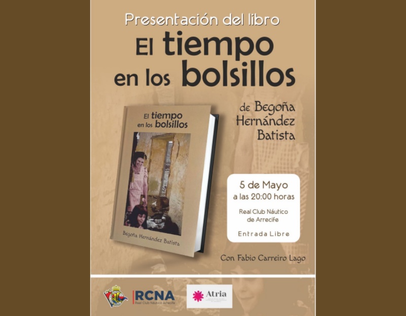 La Asociación de Mujeres Empresarias y Profesionales Atria Lanzarote tiene el placer de invitar a su medio de comunicación al acto de presentación del libro "El tiempo entre los bolsillos", de la pintora y poetisa Begoña Hernández Batista, que tendrá lugar el viernes, 5 de mayo, en el Real Club Náutico de Arrecife, a las 20:00 h.