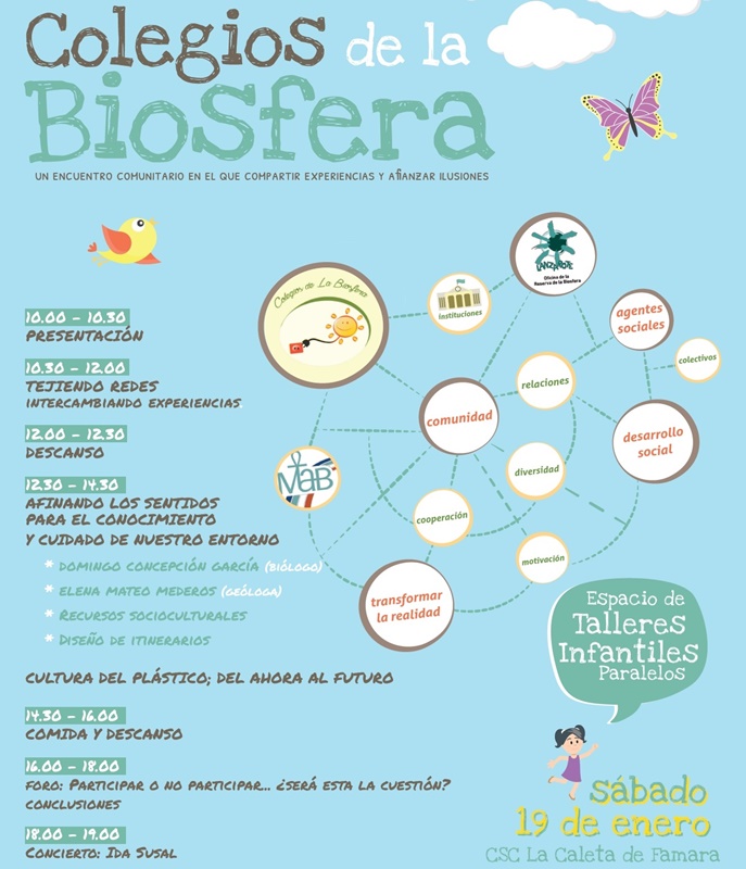 El tiempo de trabajo se cerrará con un plenario, donde se darán a conocer algunas conclusiones de este encuentro, y con la actuación musical de Ida Susal que pondrá el broche final a esta intensa jornada y encuentro comunitario de los Colegios de la Biosfera.