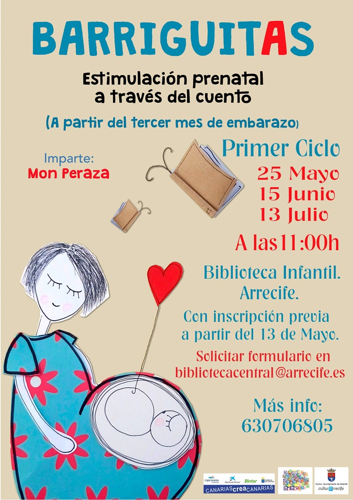 La Biblioteca Infantil del municipio de Arrecife acoge, el sábado a las 11 horas, un proyecto piloto en Europa denominado Barriguitas cuenteras, "dirigido a mamás y papás a partir del tercer mes de embarazo", tal y como indica su creadora la narradora oral Mon Peraza.