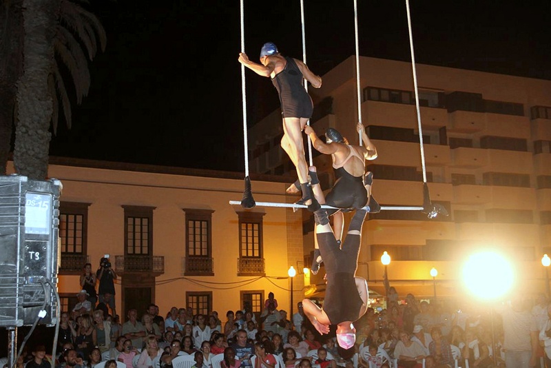 A las 20 horas, la Escuela de Circo de Lanzarote se subió al escenario con un espectáculo aéreo y de malabares, entre otros, para dar paso después a la performance “Agua Sucia” de la Asociación Cultural El Parto Cerebral.