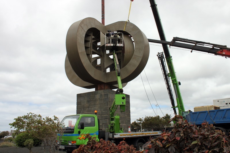 Los trabajos están precisando del empleo de maquinaria pesada "debido a la complejidad del proceso y al volumen de las piezas" que conforman el homenaje que Manrique tributó a José Ramírez Cerdá, quien fuera presidente del Cabildo de Lanzarote entre los años 1960 y 1974. La obra mide aproximadamente quince metros de altura.