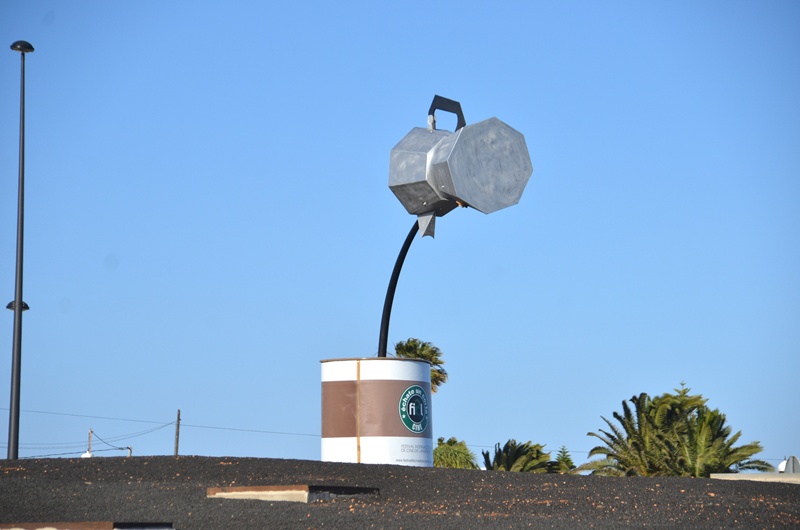 Se trata de un original reclamo, street marketing, para publicitar el Festival de Cine de Lanzarote. “Secciones oficiales de cortometrajes, tanto de animación como documental como cortos internacionales y nacionales y al equipo de dirección se nos ocurrió poner esta cafetera y echarnos un corto”, explica el publicista, Sebastián Gil.