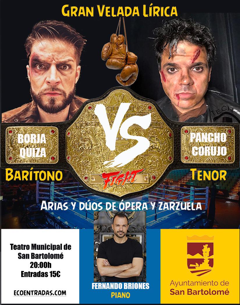 El concierto será el próximo sábado día 7 de agosto a las 20:00 en el Teatro Municipal de San Bartolomé. Pancho, el tenor de Masdache, juega en casa, pero eso no impedirá que Borja, el barítono de Ladrido, intente llevarse el público de calle. ¿Quién saldrá ganando? Seguro que los espectadores.