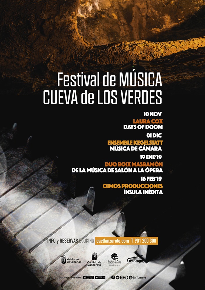 Cerrará el ciclo de conciertos del Festival de Música de Cueva de los Verdes el proyecto "Ínsula Inédita", de la productora canaria Oímos Producciones y Eventos. Esta obra, que se estrenará en el Auditorio de la Cueva, persigue fusionar los elementos de la naturaleza como el fuego, el agua y el viento, con el sonido, la melodía y la creatividad.