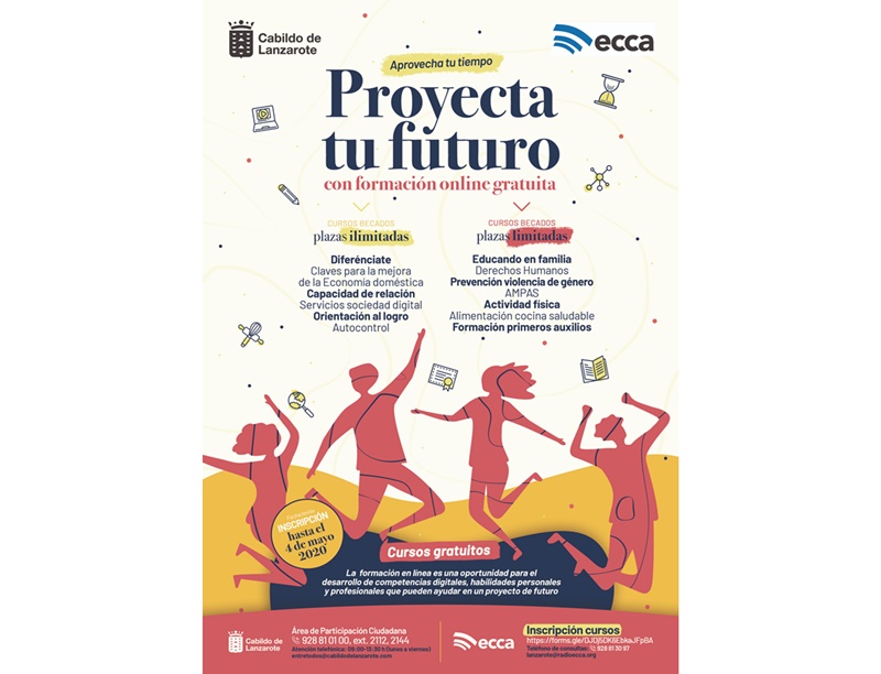 La Consejería de Participación Ciudadana del Cabildo, que dirige Paula Corujo, ha organizado, con la colaboración de Radio Ecca, varios cursos de formación online gratuitos con el slogan "Aprovecha tu tiempo, proyecta tu futuro con formación online gratuita".
